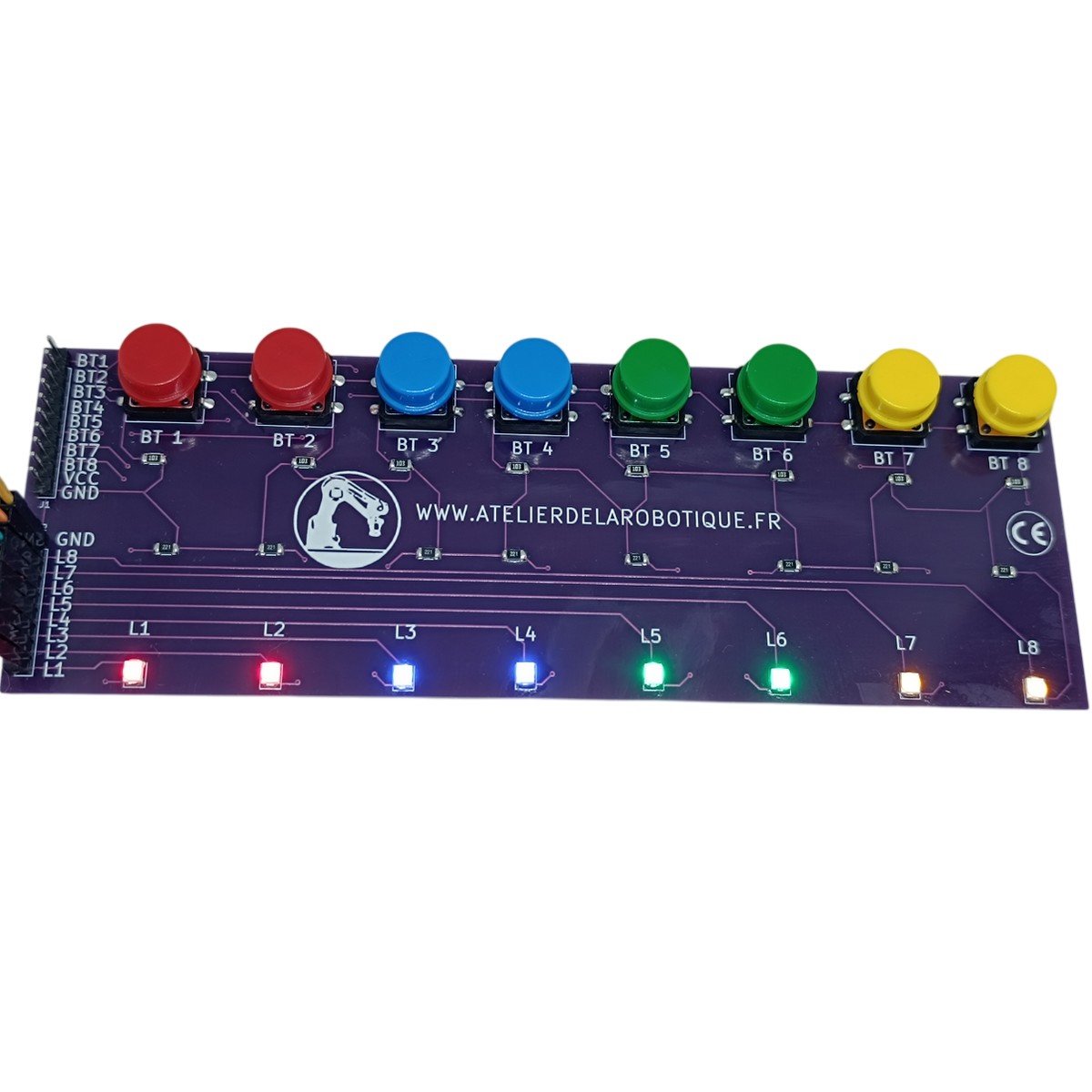 En intégrant ces fonctionnalités, la Carte Led et Boutons devient un composant essentiel pour enrichir vos projets électroniques avec une interaction et un contrôle améliorés, offrant une solution pratique et polyvalente.